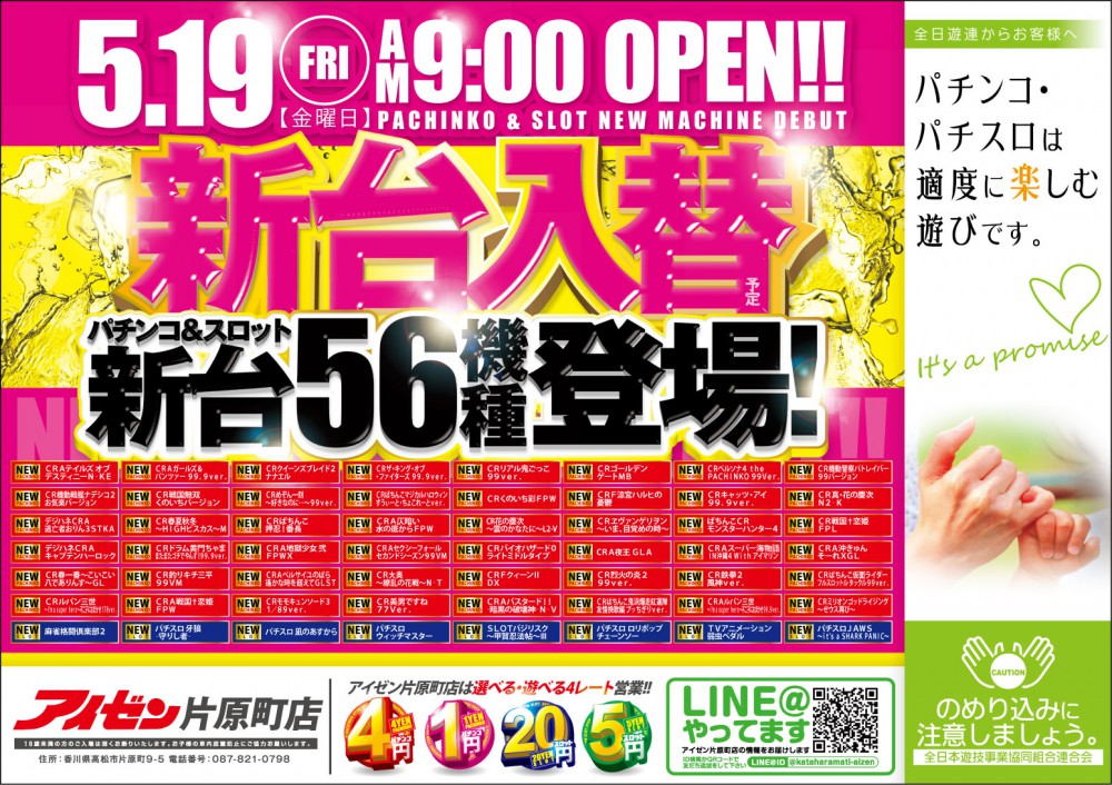 5月19日(金)新台入替 56機種登場