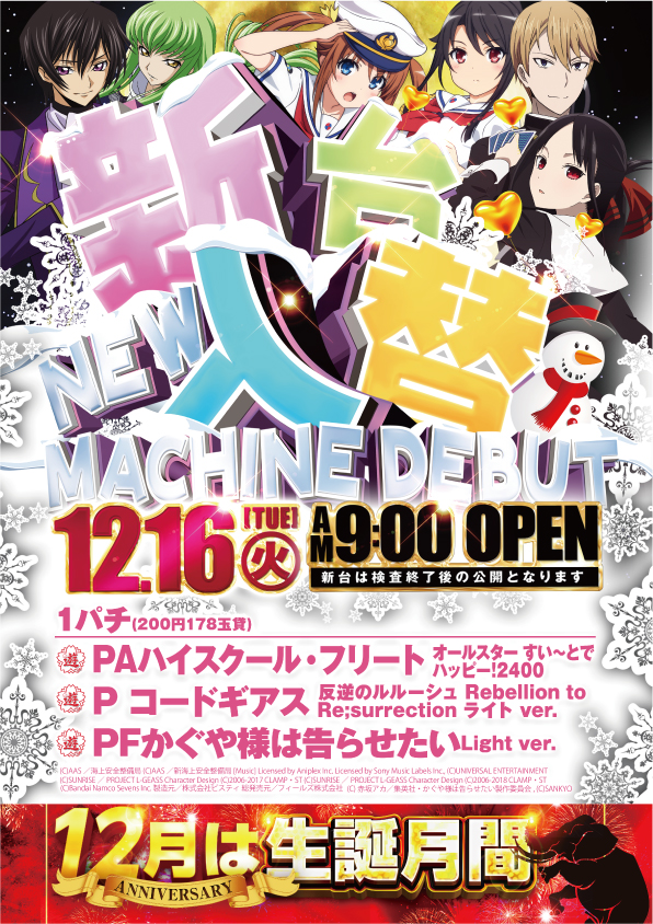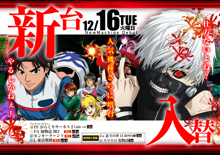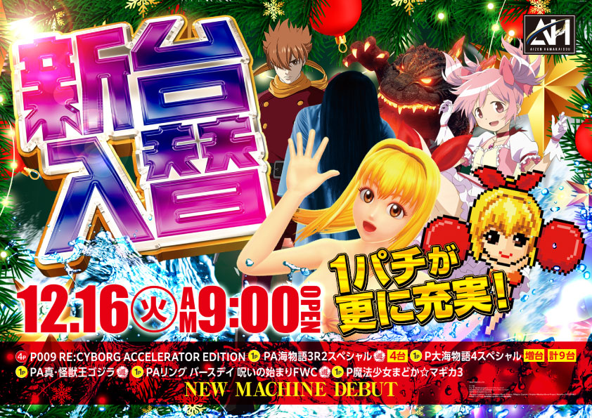 2025年12月16日~新台入替 2025年12月12日 新台情報 アトランティスアイゼン 2025年12月16日(火)新台入替 店舗情報を見る スーパーパオアイゼン 2025年12月16日(火)新台入替 店舗情報を見る はま街道店 2025年12月16日(火)新台入替 店舗情報を見る 宇多津店 2025年12月17日(水)新台入替 店舗情報を見る